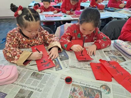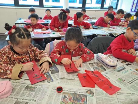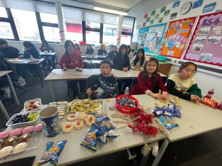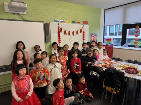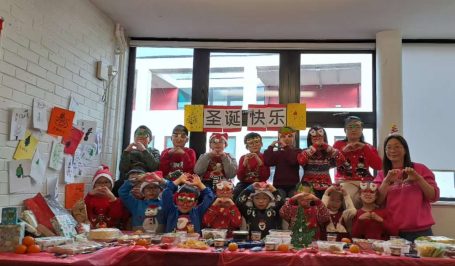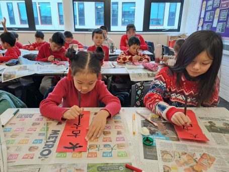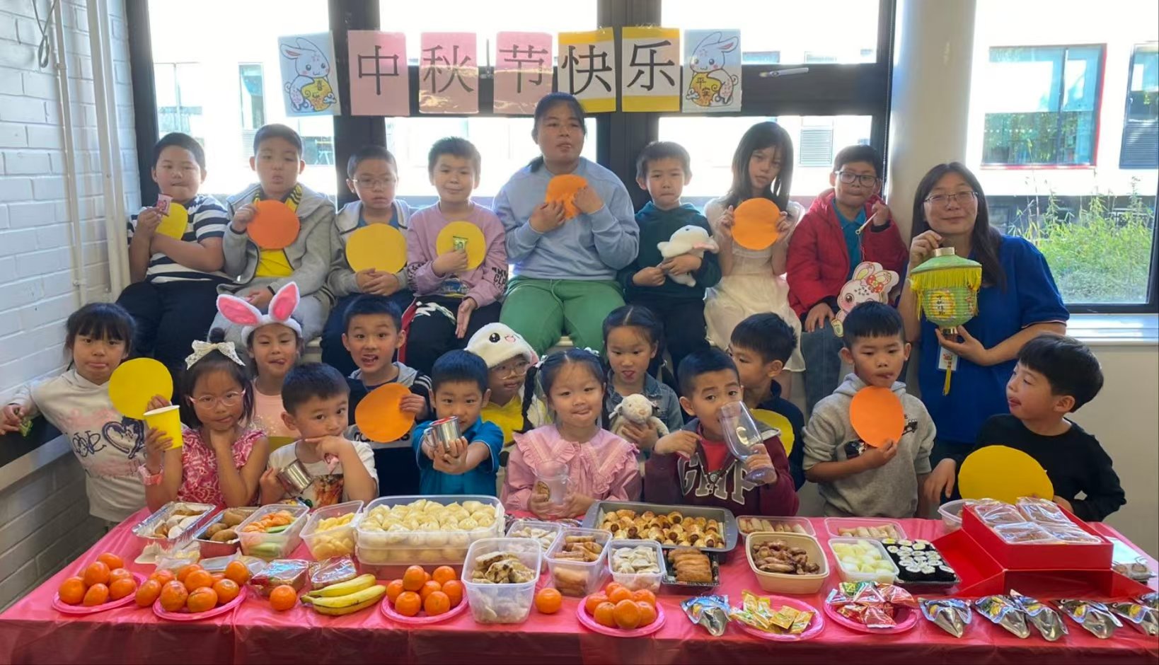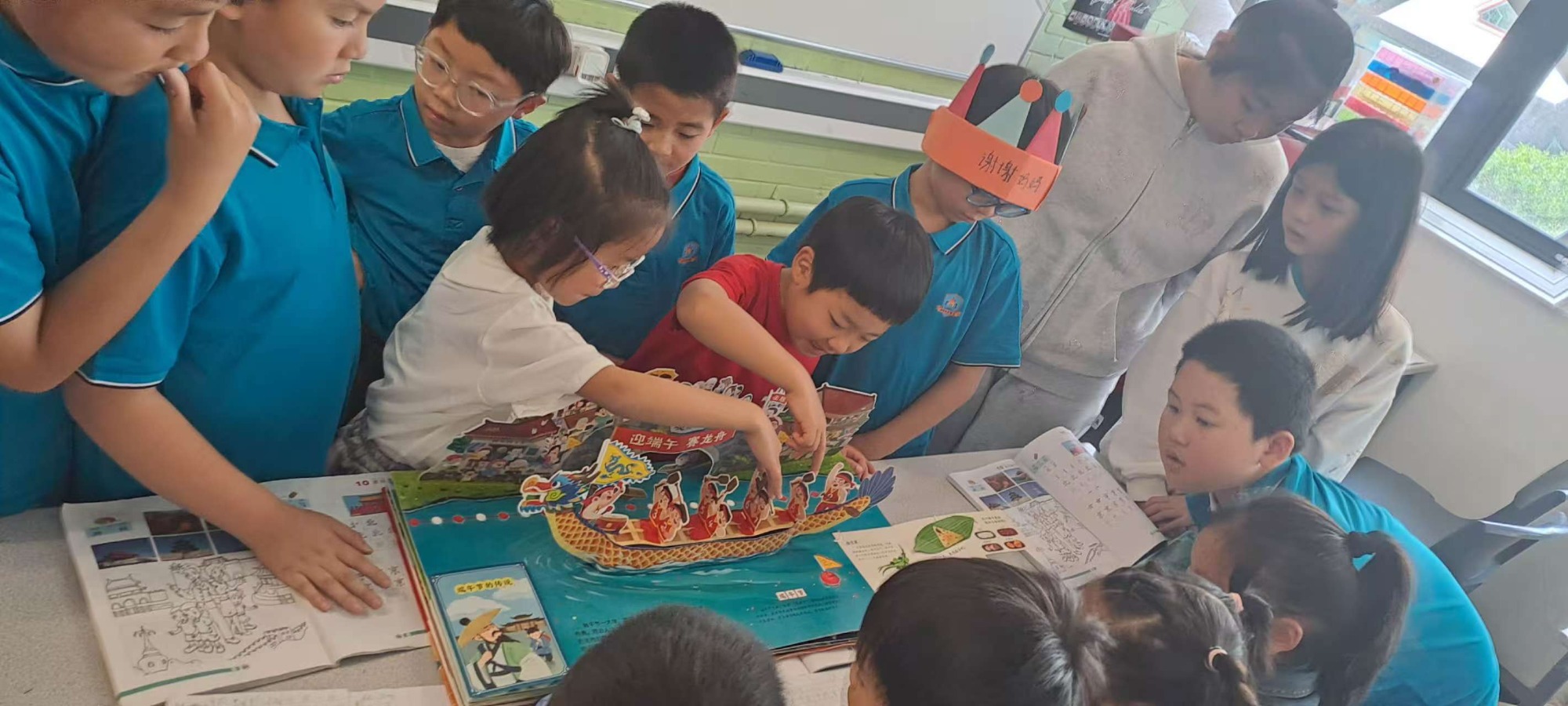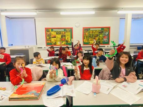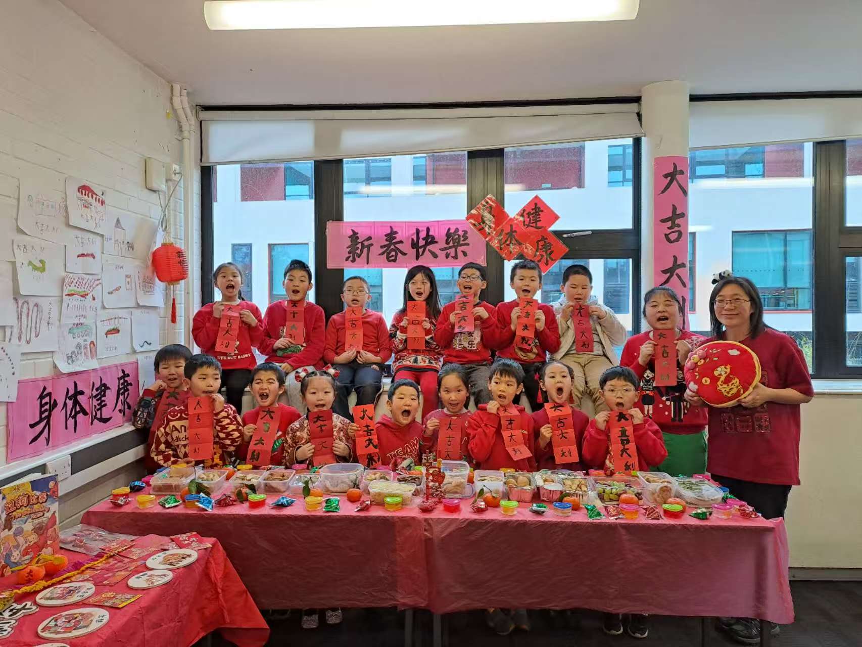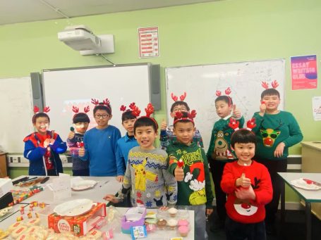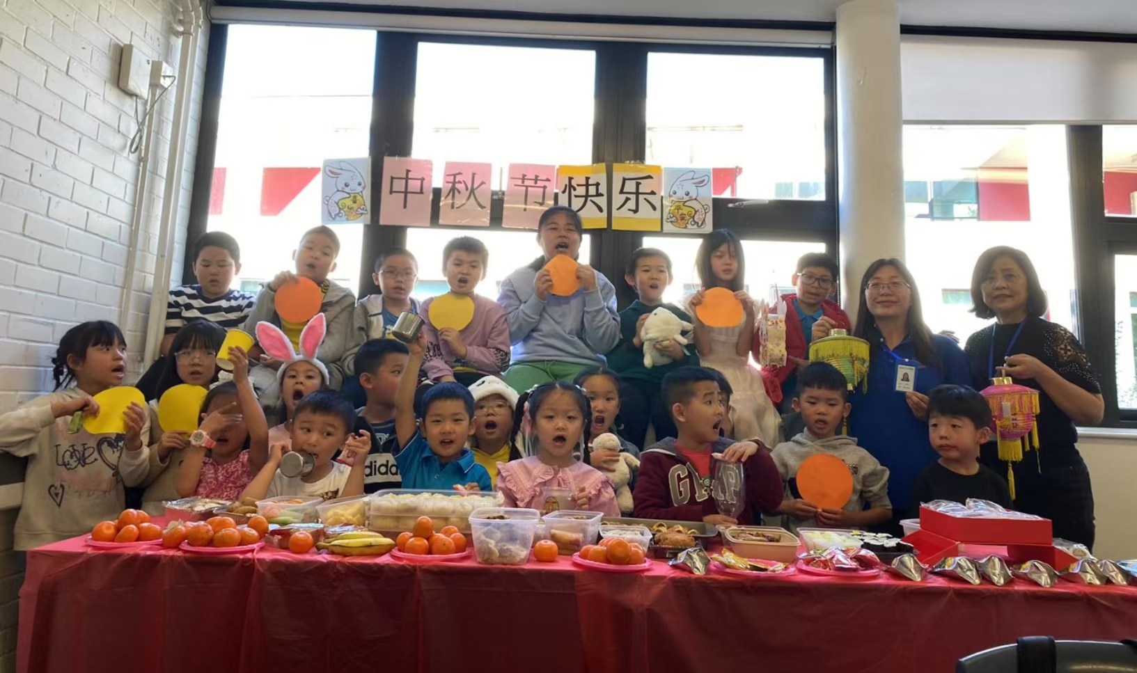 英华中文学校的同学们在课堂上庆祝节日并学习传统节日的知识。
